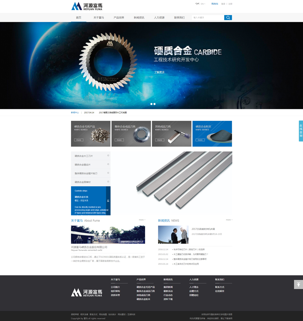 公司位于廣東省河源市仙塘經(jīng)濟(jì)開發(fā)區(qū),屬于國家級高新技術(shù)企業(yè)、廣東省創(chuàng)新型企業(yè)、廣東省戰(zhàn)略性新興產(chǎn)業(yè)骨干企業(yè)廣東省知識產(chǎn)權(quán)優(yōu)勢企業(yè),是國內(nèi)專業(yè)化的超小超薄硬 質(zhì)合金制品及其深加工制品生產(chǎn)廠家,建立有廣東工業(yè)大學(xué)河源富馬硬質(zhì)合金股份有限公司博士后創(chuàng)新實(shí)踐基地、廣東省級企業(yè)技術(shù)中心、廣東省硬 質(zhì)合金工程技術(shù)研究開發(fā)中心和廣東省教育部產(chǎn)學(xué)研結(jié)合示范基地"切削難加工金屬材料專用刀具工程研究院"等高標(biāo)準(zhǔn)研發(fā)平臺,通過了ISO9001國際質(zhì)量體系、ISO14001環(huán)境 體系認(rèn)證和廣東省清潔生產(chǎn)審核,"富馬硬質(zhì)合金"圖形商標(biāo)被認(rèn)定為廣東省著名商標(biāo),"富馬硬質(zhì)合金"產(chǎn)品被評為廣東省名牌產(chǎn)品。