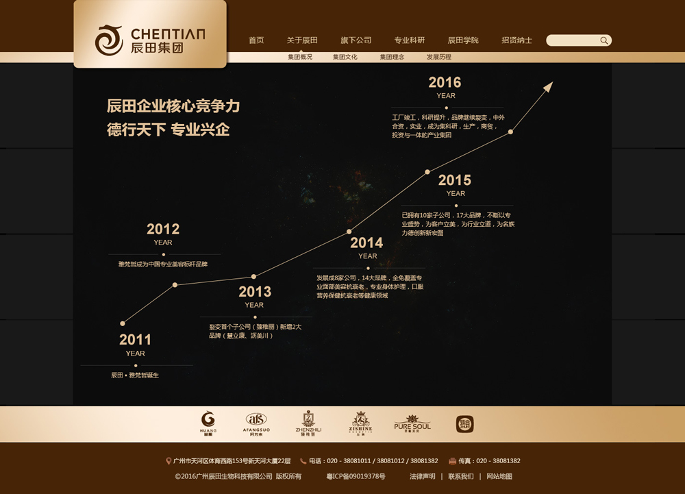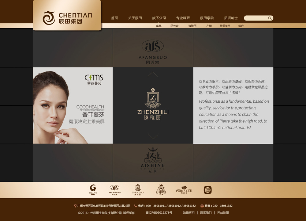 廣州辰田生物科技有限公司成立于2011年,是一家集研發(fā)、生產(chǎn)、 教育培訓(xùn)、銷售為一體的大型專業(yè)化妝品集團。辰田,源自易經(jīng)“見龍在田,利見大人”。辰,是地支的第五位,屬龍;田,生長萬物的土地。辰田,真龍騰飛的企業(yè),滋養(yǎng)美麗的沃土。