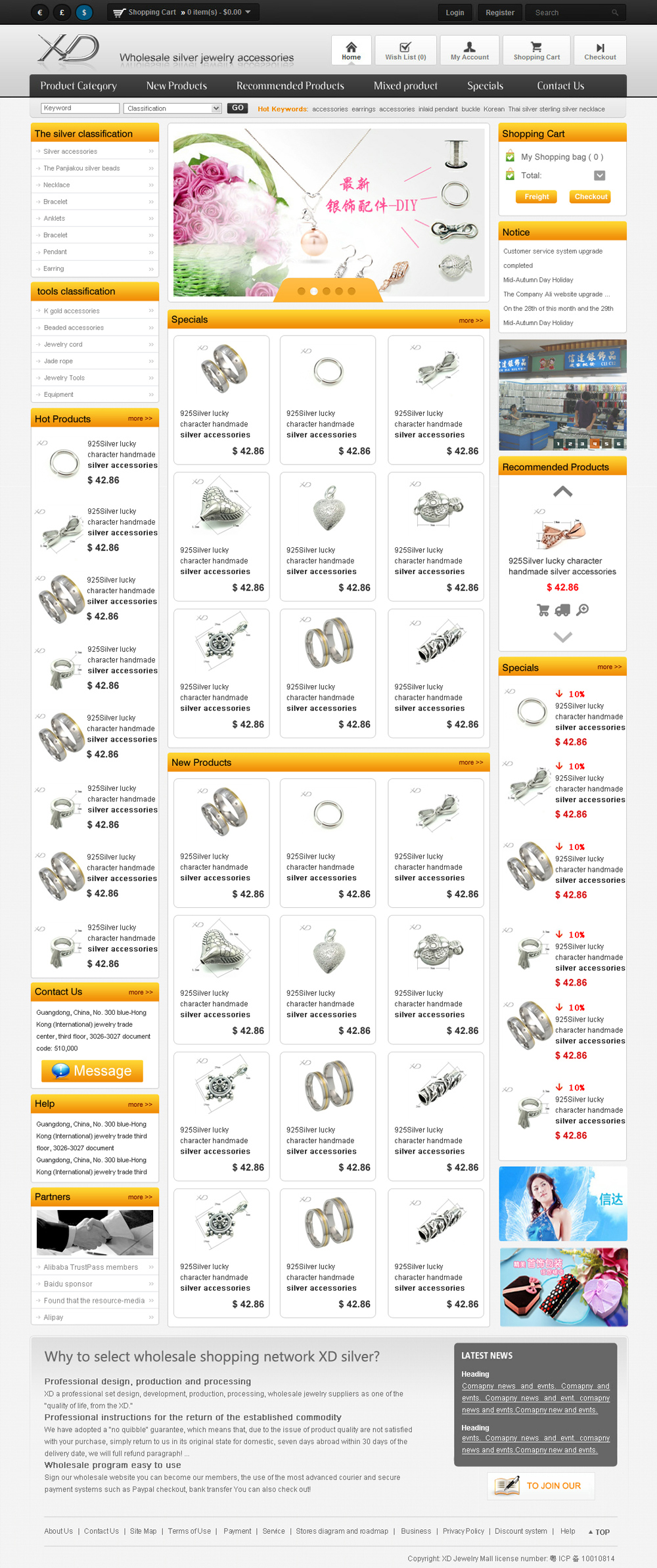 廣州市達(dá)添銀飾品有限公司旗下xdysp.com簡介五年從事電子商務(wù)以來,在眾多熱心客戶的支持下,xdysp得以茁壯成長,逐漸成為大家喜歡的銀飾品供應(yīng)商。為更加方便廣大客戶在線購買,我們繼阿里巴巴網(wǎng)站上線后,我們積極建立新網(wǎng)站。在您現(xiàn)在看到的網(wǎng)站中,各類與用戶相關(guān)的功能和設(shè)置得到盡可能好的改良和優(yōu)化。在今后,我們還將本著服務(wù)xdysp用戶、方便信達(dá)用戶的宗旨進(jìn)行更多嘗試和努力,最終達(dá)到為大家創(chuàng)造更好的網(wǎng)絡(luò)在線訂單平臺。