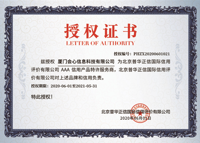 AAA信用產(chǎn)品特許服務(wù)商授權(quán)證書